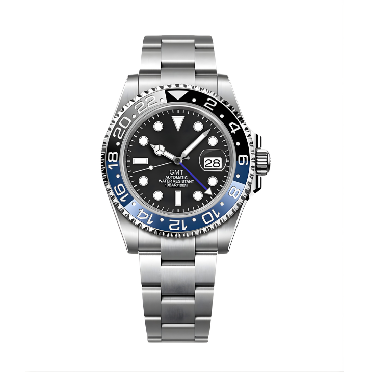 Inspired by the legendary GMT design, the SEIGMT BATMAN is crafted for world travelers and enthusiasts who demand precision with style. At its heart lies the prestigious NH34 automatic movement, delivering smooth functionality and accurate dual-time tracking.