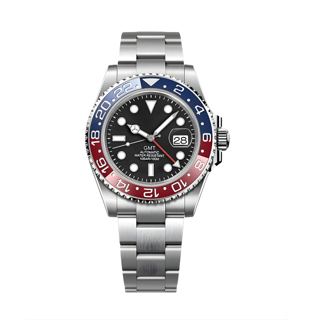 Inspired by the legendary GMT design, the SEIGMT STEALTH REDSTRIKE is crafted for world travelers and enthusiasts who demand precision with style. At its heart lies the prestigious NH34 automatic movement, delivering smooth functionality and accurate dual-time tracking.